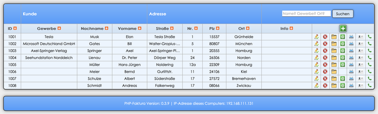• Übersichtliches Kundenarchiv in tabellarischer