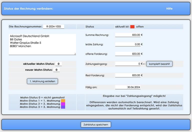 • Mahnwesen für Rechnungen